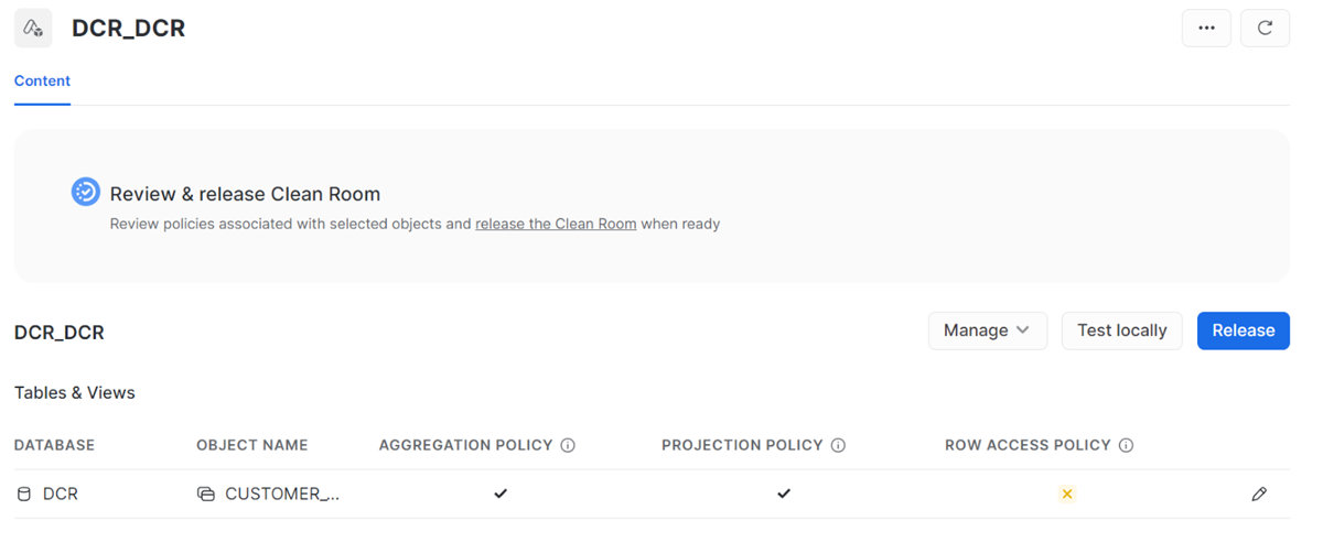 Native data clean rooms consist of two entirely new access control policies: an Aggregation Policy and Projection Policy. Each can be used individually or combined. Implementing these new data clean rooms doesn't require templates or complex workflows — only a provider that applies the policies to tables so they can achieve the functionality like the Framework-based Data Clean Rooms.